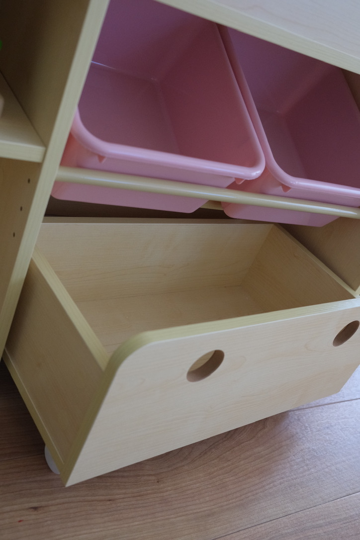 やはりのモンテッソーリ教育的には「子供が見えるようにおもちゃや絵本を配置する」ことが大事らしく、使ったあとは元通りに戻すところまでしっかり教えてあげる必要があるそうです。